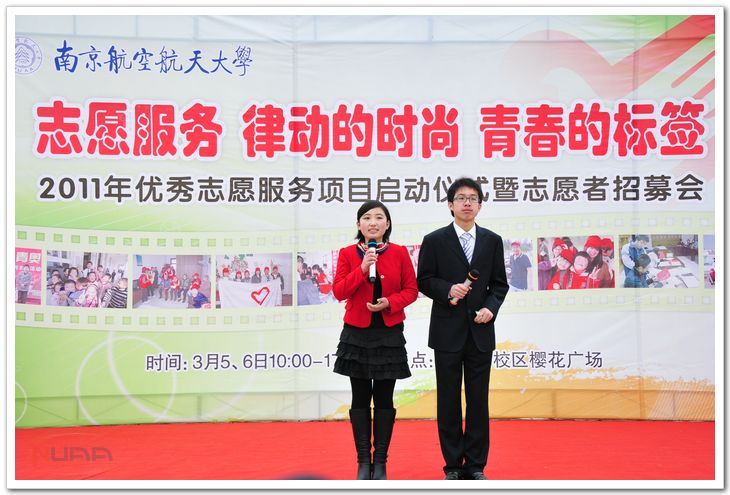 3月5日上午,由校團委主辦、校團委青年志愿者工作部承辦的“志愿服務律動的時尚 青春的標簽”——南京航空航天大學2011年優(yōu)秀志愿服務項目啟動儀式暨志愿者招募會在將軍路校區(qū)櫻花廣場舉行,共有73項志愿服務項目進行現(xiàn)場推介。在“志愿者們,出發(fā)!”號召聲中,我校2011年志愿服務活動正式啟動。 啟動儀式上,青工部首先通過視頻回顧2010年我校志愿服務成果,集中展現(xiàn)了去年志愿服務的10個精彩瞬間。隨后,2011年的73項志愿服務項目進行了現(xiàn)場推介,包括慶祝建黨90周年、2014年南京青奧會、關愛農(nóng)民工子女、校慶60周年等志愿服務項目。這些項目主題鮮明、計劃周密、方案詳實,契合了學生們關心的熱點,吸引了1000余名學生報名參加。 在啟動儀式結束后,電子信息工程學院、計算機科學與技術學院志愿者走進學校西苑社區(qū)開展“簡易家電維修”志愿服務活動,外國語學院志愿者到通勝客運公司開展“助力青奧,司機學外語”志愿服務活動,校青年志愿者協(xié)會也把“愛心家教”志愿服務活動帶到了太平花苑社區(qū)。志愿者們以熱情、周到、細致、專業(yè)的服務得到了服務對象們一致好評,也得到了學校以及共青團江寧區(qū)委領導的認可。 |