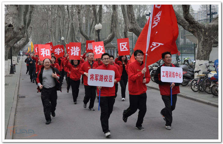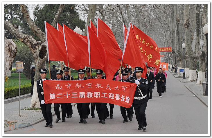 4月1日下午,我校明故宮校區(qū)田徑場彩旗招展,人頭攢動,教職工們個個熱情洋溢,歡聲笑語。來自全校21個部門工會的長跑方隊,共1900多人參加了第二十三屆迎春長跑活動,本次活動的口號是“為生命喝彩、給健康加油”。校紀(jì)委書記、工會主席劉麗華、黨委副書記、副校長陳夏初同志,校長助理黃炳輝同志,以及各部門、各學(xué)院的領(lǐng)導(dǎo)參加了迎春長跑。 下午4點30分,隨著劉麗華同志一聲發(fā)令槍響,迎春長跑正式開始,聲勢浩大的隊伍即刻出發(fā)。長跑隊伍由校衛(wèi)隊員組成的領(lǐng)跑方隊開道,各單位方隊的教職工身著統(tǒng)一服裝,邁著整齊的步伐,喊著嘹亮的口號。行進途中,長跑隊旗手們高舉自己的旗幟,將整個浩浩蕩蕩的長跑大軍連成一條“長龍”。為展示教職工風(fēng)采,各單位盡自己所能,發(fā)揮潛力營造氣氛,努力為本單位爭光添彩。各單位的領(lǐng)導(dǎo)們積極參與,有的領(lǐng)導(dǎo)還親自扛著大旗,職工們精神抖擻,舉著橫幅,搖動彩旗,口號聲在“長龍”中此起彼伏,大家似乎在比誰的口號更嘹亮。熱鬧的場景引來不少師生駐足觀看,參與長跑的人更加興致高昂。雖然有些女老師有些氣喘吁吁,但誰都不愿掉隊,互相鼓勵堅持跟上隊伍。加油助威聲不絕于耳,整個校園一片歡騰,呈現(xiàn)出一片熱烈而壯觀的場面。 本次迎春長跑活動設(shè)優(yōu)勝獎和組織獎各六名,經(jīng)過激烈的角逐、評比,12個部門工會獲獎。獲得優(yōu)勝獎的單位是:航空宇航學(xué)院、能源與動力學(xué)院、自動化學(xué)院、材料科學(xué)與技術(shù)學(xué)院、繼續(xù)教育學(xué)院、后勤集團。獲得組織獎的單位是:電子信息工程學(xué)院、機電學(xué)院、理學(xué)院、機關(guān)黨委、圖書館、醫(yī)院。通過長跑活動,進一步強化了廣大教職工強身健體的意識,展示了南航教職工良好的精神面貌,同時也進一步增強了教職工的集體榮譽感和凝聚力。 |