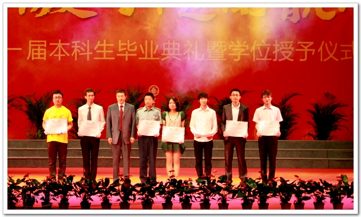 6月22日下午,“我驕傲,我是南航人”2011屆本科生畢業(yè)典禮暨學(xué)位授予儀式在明故宮校區(qū)舉行。黨委書記崔銳捷,校長朱荻,黨委副書記、副校長陳夏初,副校長聶宏、吳慶憲,校長助理黃炳輝,陳達院士、賁德院士,各機關(guān)部處和學(xué)院領(lǐng)導(dǎo)、教師代表、家長代表出席了典禮。我校杰出校友、中國航天科技集團公司第八研究所副院長秦文波應(yīng)邀出席了本次典禮。 本次畢業(yè)典禮由“過去篇——南航的烙印”、“現(xiàn)在篇——我驕傲我是南航人、“未來篇——南航為你們驕傲”三大篇章組成。典禮上的視頻回顧了2011屆本科生入學(xué)四年以來與母校同呼吸、共成長的點點滴滴。食堂“飯?zhí)妹烂?rdquo;、保衛(wèi)隊“硯湖小王子”、教育超市“打卡姐姐”……這些在校園生活中被學(xué)生們廣為流傳的人物紛紛登上舞臺。其中,一位被學(xué)生們親切地稱為“兒子最多的母親” 的宿管阿姨,用樸實的語言表達了離別的不舍和真摯的祝愿,一句“常回家看看”讓畢業(yè)生們熱淚盈眶。由各學(xué)院畢業(yè)生推選出的14位“記憶最深刻的”任課教師,輪流上臺為畢業(yè)生們送上臨別贈言,每位老師登臺的瞬間,學(xué)生中都會爆發(fā)出熱烈的掌聲與歡呼。隨后,畢業(yè)生代表們?yōu)樗麄兯蜕鲜掷L的肖像漫畫,與老師們深情擁抱,表達對恩師的感激之情。 優(yōu)秀學(xué)生代表“自強之星”加多呷呷的父母在學(xué)校的幫助下從四川涼山彝族自治區(qū)乘飛機趕來參加女兒的畢業(yè)典禮,也圓了加多呷呷的一個夢想。呷呷的母親朱五支用彝族的民族樂器吹奏了一曲節(jié)日歡歌,為畢業(yè)學(xué)子送上了大山的祝福。呷呷父親加多五惹深情地回憶了呷呷初入南航時父老鄉(xiāng)親的解囊相助,他激動地表示能夠看著呷呷在這四年中成長成熟,完成學(xué)業(yè)建設(shè)家鄉(xiāng),他代表全家及全寨的鄉(xiāng)親向向全校師生表示最為真摯的感謝。這深沉的父愛令人現(xiàn)場師生動容落淚。 黃河峽等優(yōu)秀畢業(yè)生分別代表學(xué)習(xí)典范、科創(chuàng)精英等18類學(xué)生群體,深情講述了自己在南航的成長歷程和美好回憶,并集體朗誦了長詩《我驕傲,我是南航人》。在詩篇結(jié)尾處,全場畢業(yè)生起立,發(fā)出共同的心聲“我們必須去奮斗!去奮斗!去奮斗!”,表達了奔赴祖國各地建功立業(yè)的雄心壯志與豪邁情懷。 中國航天科技集團公司第八研究所副院長秦文波對畢業(yè)的學(xué)弟學(xué)妹們送上祝福寄語。現(xiàn)場還播放了我校部分教學(xué)名師及全體2011屆畢業(yè)生輔導(dǎo)員對畢業(yè)生們的視頻寄語。陳達院士、賁德院士與黨委書記崔銳捷分別為2011屆優(yōu)秀畢業(yè)生代表及先進集體代表頒發(fā)榮譽證書。 朱荻校長代表學(xué)校寄語2011屆畢業(yè)生。他希望畢業(yè)生們要堅定報國之心,永遠保持對國家、對社會、對人民的忠誠和信念;要保持學(xué)習(xí)的熱情,求知若渴,向?qū)嵺`學(xué)習(xí),向社會學(xué)習(xí);要常懷感恩之心,以實際行動回報國家與民族,回報父母與師長;常懷平常之心,踏踏實實地做好平常之事,建立自己的人生信譽。 畢業(yè)典禮之后是隆重的學(xué)位授予儀式,校領(lǐng)導(dǎo)著導(dǎo)師服上臺,為在場的近700名畢業(yè)生一一扶正流蘇并合影留念。在學(xué)位授予儀式進行期間,畢業(yè)生或用擁抱的方式表達了對導(dǎo)師的感激之情,或在接受證書時主動掏出紙巾為導(dǎo)師們拭去額上的汗水,現(xiàn)場展現(xiàn)了一幅幅師生情深的動人畫卷。學(xué)位授予儀式結(jié)束后,2011屆畢業(yè)生們面向?qū)煟w宣誓:我將不忘師長教誨,銘記母校囑托,發(fā)揚南航精神。懷著“智周萬物、道濟天下”的決心,用卓越引領(lǐng)青春,用責(zé)任書寫未來。努力做一名勤于學(xué)習(xí)、善于創(chuàng)造、甘于奉獻、勇于擔(dān)當?shù)哪虾饺耍?/div> 據(jù)統(tǒng)計,2011屆3886名本科畢業(yè)生中共有786人獲省、部、國家級獎項,35人受到學(xué)校通報表揚和通令嘉獎,5305人次獲校級優(yōu)秀學(xué)生獎學(xué)金、6013人次獲各類校級榮譽。 保衛(wèi)隊員、教育超市、圖書館、食堂工作人員以及宿舍管理員阿姨寄語畢業(yè)生