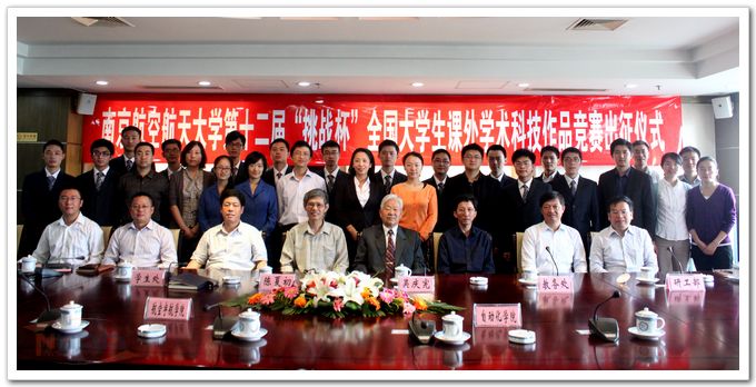 會上,陳夏初代表學校向參與此次挑戰杯籌備工作的全體師生表示感謝,希望參賽隊員放平心態,輕裝上陣,發揚團隊精神,賽出水平,賽出風格,并預祝參賽團隊取得優異的成績。吳慶憲為參賽同學代表授旗,表達了學校對即將出征的團隊的熱情鼓勵和美好祝愿。教務處處長王成華勉勵參賽隊員克服困難、勇于挑戰,沉著應對,充分展示新一代南航科創學子的精神風貌。 校團委副書記丁琛介紹了我校備戰第十二屆“挑戰杯”全國大學生課外學術科技作品競賽的工作情況。參賽學生代表張銀輝同學和指導教師代表沈春林教授分別發言。他們表示,必將以最佳的狀態參賽,力爭在本次“挑戰杯”中再創佳績,載譽而歸,為母校爭光。 “挑戰杯”全國大學生課外學術科技作品競賽兩年舉辦一次,被譽為當代大學生科技創新的“奧林匹克”盛會。第十二屆“挑戰杯”全國大學生課外學術科技作品競賽由共青團中央、中國科協、教育部 、全國學聯、遼寧省政府主辦,終審決賽將于10月15日至20日在大連理工大學舉行。我校自2010年3月啟動了相關工作,在學校相關部門的支持和指導下,經過六輪的校內選拔,以及江蘇省省賽、全國初賽等層層突破,最終六件作品突破重圍,進入全國終審決賽。 ![]() 黨委副書記、副校長陳夏初講話 ![]() 與會師生合影