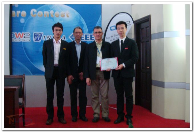 10月13日,在北京科技大學(xué)舉行的國際OW2 Programming Contest 2011頒獎儀式上,由我校計算機科學(xué)與技術(shù)學(xué)院院長黃志球教授指導(dǎo)的一支隊伍獲得銀牌,創(chuàng)造了我校學(xué)生參加該項賽事的歷史最好成績。據(jù)悉,在決賽中我校參賽隊與來自北京大學(xué)、復(fù)旦大學(xué)、北京航空航天大學(xué)、國防科技大學(xué)、中科院軟件研究所、巴西圣保羅大學(xué)等全球知名高校的十八支參賽隊進(jìn)行角逐,最終來自中科院軟件研究所的一支隊伍獲得金牌,我校參賽隊以第二名的成績與來自北京大學(xué)、國防科技大學(xué)及中科院軟件研究所的五支隊伍獲得銀牌,來自北京大學(xué)、北京航空航天大學(xué)及復(fù)旦大學(xué)的另外四支隊伍獲得銅牌。 在此次頒獎答辯環(huán)節(jié)中,參賽隊領(lǐng)隊、計算機科學(xué)與技術(shù)學(xué)院研究生唐佳俊同學(xué)介紹了參賽項目及所在科研團隊軟件工程研究工作的現(xiàn)狀與發(fā)展,獲得了OW2首席執(zhí)行官Cedric THOMAS的高度評價。期間Cedric THOMAS與我校學(xué)子就項目團隊、后續(xù)發(fā)展規(guī)劃、如何與現(xiàn)有OW2開源項目結(jié)合等問題進(jìn)行了深入的交流。 OW2起始于2002年1月,由法國國家信息與自動化研究院(INRIA),Bull以及法國電信(France Telecom)聯(lián)合發(fā)起,已經(jīng)逐步發(fā)展成為一個成熟的跨越三大洲的開源組織。旗下久負(fù)盛名的項目有:Acceleo、ASM、Bonita、EasyBeans、JavaService、JORAM、Orchestra、Bench4Q、SpagoBI、Xwiki等。今年是該項賽事繼2009年、2010年后第三次在我國舉辦,由歐洲和中國的專家發(fā)起,共同促進(jìn)中歐技術(shù)交流及合作,同時也在世界范圍內(nèi)為學(xué)生提供了一個展示編程能力的平臺。本次參賽獲獎,也是我校連續(xù)三年獲得此項賽事榮譽,得到業(yè)內(nèi)專家的一致肯定與好評。 ![]() ![]()