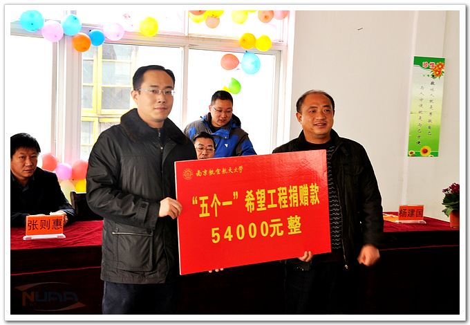 “每一個團支部,每一個團員,每一天,節約一角錢,資助一名貧困學生”,這就是我校一年一度的“五個一”希望工程。12月1日,承載著全校團員青年的愛心,參加本年度“五個一”希望工程淮陰捐款活動的各團支部同學代表在校團委副書記方正的帶領下,來到淮安市淮陰區吳城中學,代表學校“五個一希望工程”向吳城中學貧困學生捐款54000元。 在捐款儀式上,吳城中學楊建國校長代表全校師生對我校師生的到來表示熱烈歡迎,并對我校“五個一”希望工程多年來對學校的幫助表示衷心感謝。方正老師代表同學們對吳城中學的熱情接待表示感謝并建議南航同學們在獻愛心時除了物質方面的資助,更要注重對受助同學精神層面上的支持。淮陰地區扶貧工作的相關負責同志也參加了授款儀式。 儀式結束后,各團支部代表與吳城中學南航班的同學們進行了親切交流,氣氛十分融洽。在當地負責同志的帶領下,我校同學參觀了吳城鎮工業區、農業大棚基地和頭莊村村黨支部,深切感受蘇北地區正在快速崛起的經濟和社會主義新農村的良好風貌。 今年全校共有235個團支部參與“五個一”希望工程,籌得資金14.2萬,用于資助淮陰吳城中學、南京雨花臺中學、西藏當雄縣中學、河北武強縣街關中學等14所學校的貧困學生,幫助更多貧困學子走進校園,實現讀書夢想。此次淮陰送款活動也標志著今年的“五個一”工程圓滿結束。“五個一”希望工程自1995年創立以來,受到學校各級領導的大力支持和同學們的熱心參與,體現著一代代南航青年高度的社會責任感。 ![]() |