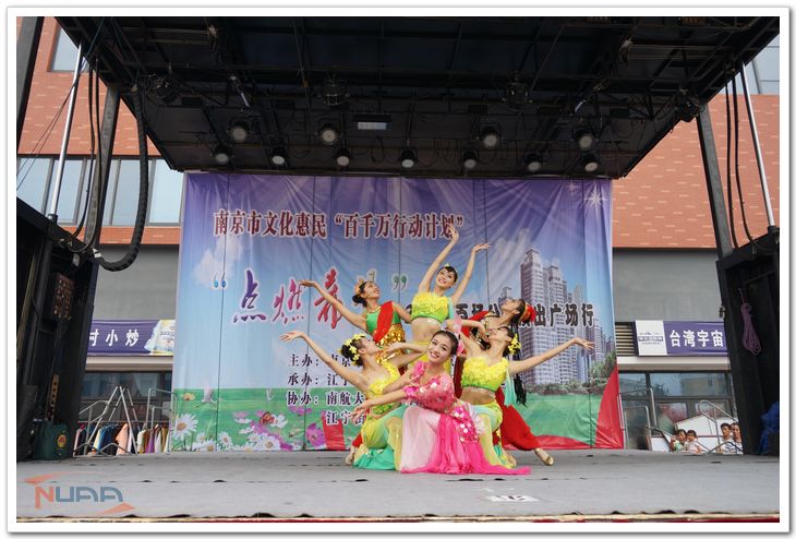 我校大學生藝術團出色完成6場南京市政府主辦的“百場公益惠民演出”,先后走進江寧區、鼓樓區、秦淮區、玄武區、棲霞區、浦口區, 將南航學子真善美的精神風貌傳遞給每一位觀眾。