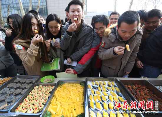 ![]() 3月12日,一場食堂新菜品試吃會在南京航空航天大學舉辦,前期征集的50名學生試吃員現場試吃五個食堂的20種新菜品(脆皮香蕉,蘆蒿漲蛋,瑪瑙蛋,菊花魚等),試吃后現場投票選出自己最愛的美食,同時還有“轉圓盤、答問題、贏驚喜”食品安全衛生宣傳等一系列活動。 江蘇新聞網原文網址:http://www.js.chinanews.com/photo/2015/0312/2134.html |