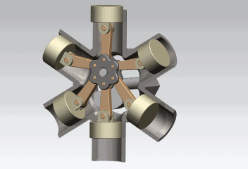 這四個沖程合起來稱為一個“工作循環”,它們實際上代表了所有類型的內燃機的最基本原理。進氣沖程里,由于上一個工作循環中發動機運轉帶來的轉軸的慣性,活塞下移,氣缸內空間變大,吸入外邊的新鮮空氣;壓縮沖程,油嘴噴油,同時還是由于轉軸的慣性,活塞上移,壓縮之前吸入的那些新鮮空氣,使得空氣的單位體積含氧量上升、溫度升高,變得容易與燃料混合并燃燒;做功沖程,火花塞產生電火花點燃油氣混合物,混合物燃燒產生巨量的高溫高壓氣體,氣壓推動活塞向下運動,燃燒產生的氣體熱能被轉化為機械能,也就是發動機真正“使勁兒”的地方;排氣沖程,轉軸的慣性驅動活塞上移,把已經冷卻下來的廢氣擠出氣缸,來到下一個工作循環的“起始位置”。這是單個氣缸的例子,實際的發動機往往有多個氣缸,甲氣缸的做功沖程可以用來驅動乙氣缸的壓縮沖程,反之亦然,因此工作循環中不用那么依賴慣性;只是啟動發動機的時候需要借助外部力量先讓發動機轉軸轉起來,完成進氣、壓縮兩個沖程后才能“打著火兒”。早期的活塞式飛機都需要地勤人員用手推一下螺旋槳槳葉才能啟動,就是因為這個原因;后來在二戰時期的活塞式飛機和今天的汽車上,我們有專門的電動機負責啟動。