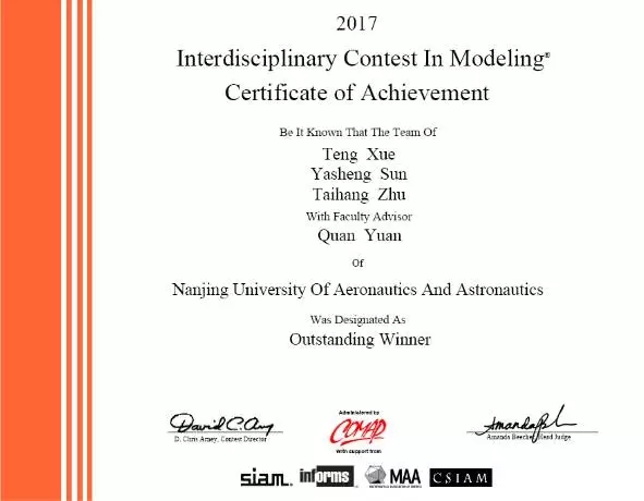 2017年國際數學建模競賽(MCM/ICM)北京時間4月7日晚23時左右正式發布。我校由48名同學組成的16支參賽隊伍,經過連續一個多月的培訓、四天四夜的激烈比賽,最終榮獲國際特等獎1項,一等獎1項,二等獎5項,成功參賽獎8項,該成績是我校學生在美國大學生數學建模競賽上的歷史性突破。