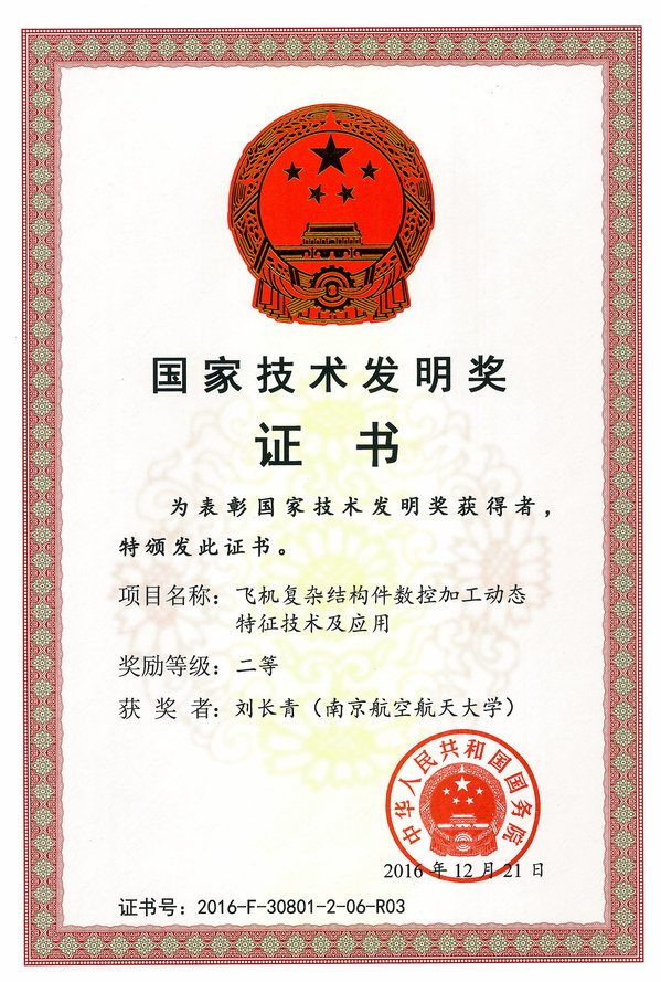 2011級博士生劉長青于2016年作為第三署名人獲得國家技術發明二等獎
