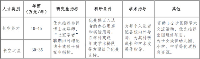 “長空英才”:在學科領域內具有較高的學術影響力,學術成果得到廣泛認可,且具有較大學術發展潛力的優秀中青年人才,以入選國家級高端人才計劃為培養目標;一般年齡不超過40周歲。