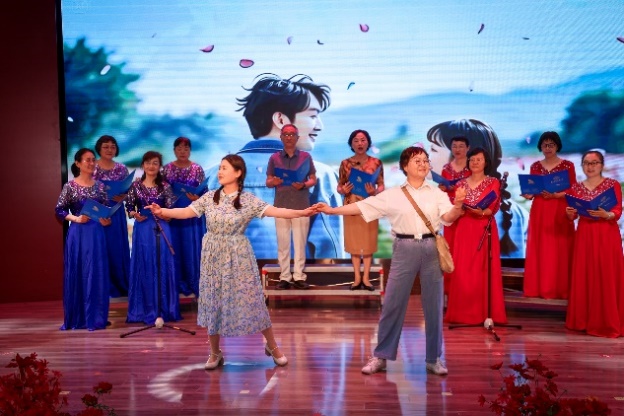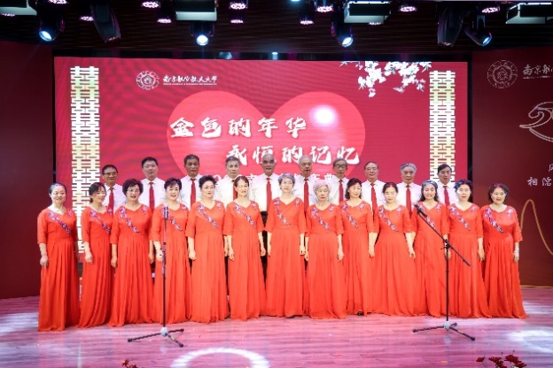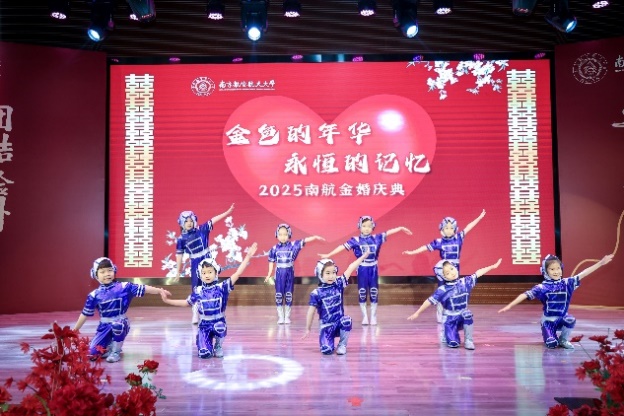 舞臺上,金婚夫婦為彼此獻上美麗的鮮花。王暉為金婚夫婦送上象征幸福美滿、永浴愛河的禮物。金婚夫婦原所在單位的負責同志贈送了特別定制的精美水晶相框,祝福他們的感情歷經歲月洗禮依然堅如磐石、幸福長久。南航幼兒園的小朋友、夕陽紅藝術團和老體協的老同志們表演了精彩節目,慶典在喜慶熱烈、溫馨祥和的氣氛中落下帷幕。