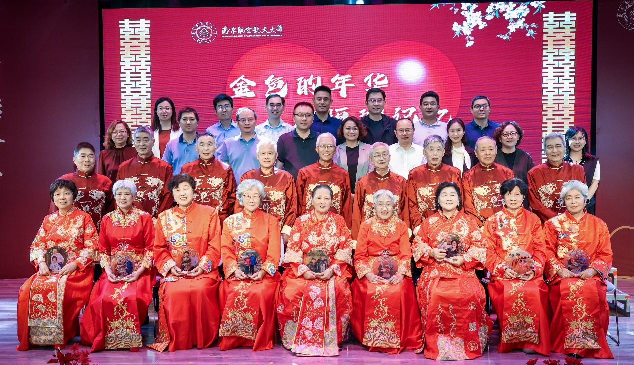 王暉代表學校向金婚夫婦送上美好祝福。她表示,金婚夫婦不僅是愛情的楷模,更是家國情懷的傳承者,書寫了最生動的“家風教科書”。他們攜手并肩,用五十年的相濡以沫與南航同行,為祖國航空航天事業和學校發展進步做出了積極貢獻。希望廣大師生以金婚夫婦為榜樣,將“小家”的幸福融入“大家”的發展,讓文明家風成為學校立德樹人的重要滋養,共筑幸福南航。學校也將繼續用心用情用愛做好離退休工作,讓南航成為大家的幸福家園。