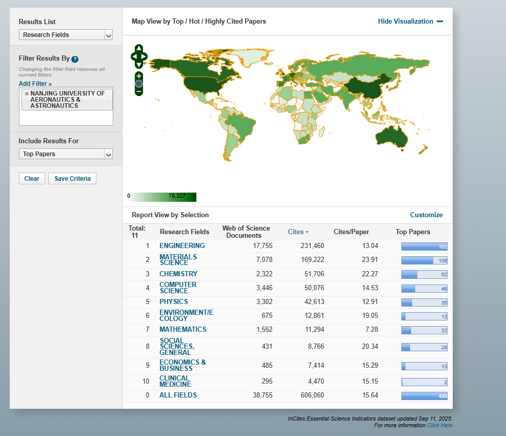 ESI是衡量科學研究水平、跟蹤學科發展趨勢的重要分析工具,其數據每兩個月更新一次,涵蓋全球高校和科研機構的22個學科領域。本次數據統計覆蓋時間為2015年1月1日至2025年6月30日。截至目前,我校工程學、材料科學、計算機科學、化學、數學、物理學、環境科學與生態學、社會科學總論、臨床醫學、經濟學與商學共10個學科進入ESI全球前1%,其中,工程學進入全球前1.36?,材料科學、計算機科學穩居全球前1‰。與上期數據相比,我校10個學科全球排名百分位均穩步提升。