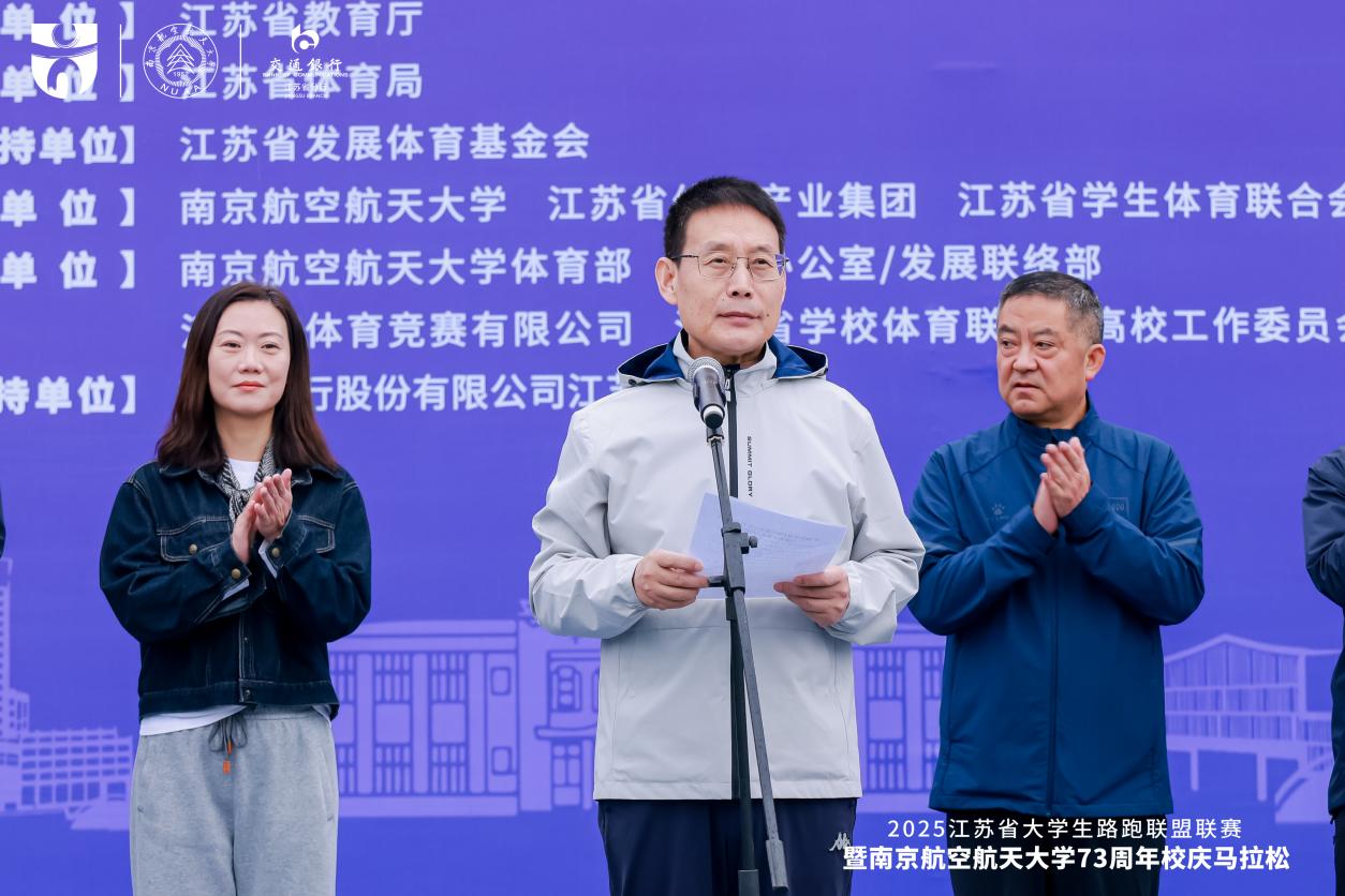甄良在致辭中向全校師生員工和海內外校友致以節日問候,向出席活動的領導嘉賓和參賽運動員表示熱烈歡迎。他指出,希望以本次馬拉松為契機,牢固樹立“健康第一”的理念,讓廣大師生更加熱愛運動、熱愛生活,在體育鍛煉中增強體質、磨練意志,在堅持運動中更健康、更自信、更從容,弘揚并踐行好“團結、儉樸、唯實、創新”的校風和“智周萬物、道濟天下”的校訓,在服務新型工業化和國防現代化的新征程中,奮力跑出屬于南航人的精彩成績。